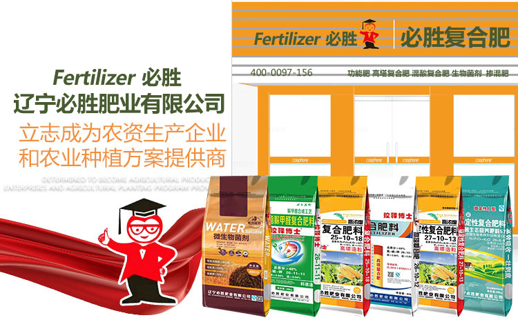 遼寧必勝肥(fei)業有限公司(si)成立于1998年(nian)。主營(ying)高塔復合肥(fei)、碳能(neng)型脲甲醛緩釋(shi)(shi)肥(fei)、穩定性螯(ao)(ao)合肥(fei)、鋅腐酸型 螯(ao)(ao)合肥(fei)、海藻酸鉀型螯(ao)(ao)合肥(fei)、氨基酸型螯(ao)(ao)合肥(fei),是東北較大(da)的緩控釋(shi)(shi)肥(fei)與新型螯(ao)(ao)合肥(fei)生產基地,產品遠(yuan)銷于遼寧、吉林、黑龍江、河北、內蒙古(gu)、山東等地,深受廣大(da)用戶的好評。